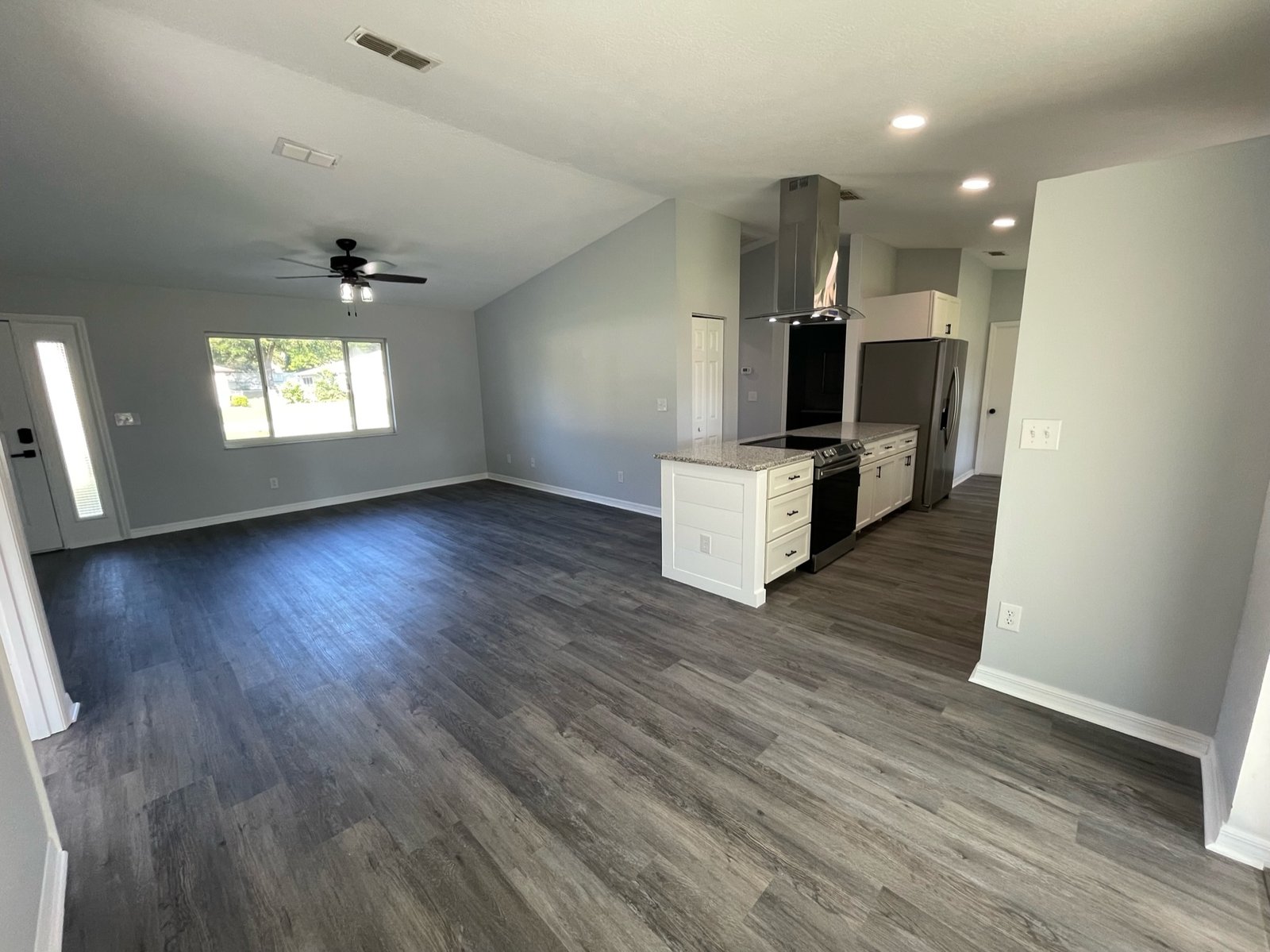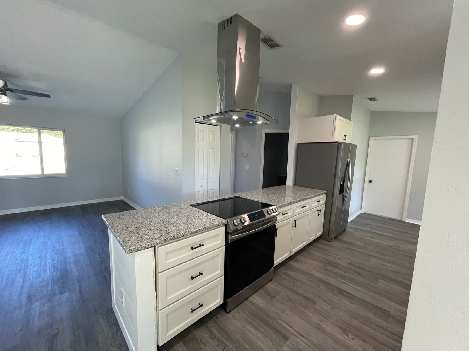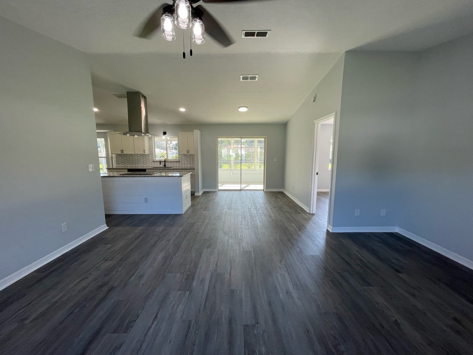 To complete the renovation, we installed recessed lighting in the main living spaces to enhance both function and ambiance. Washer and dryer hookups were added to the oversized two-car garage, providing convenient utility access. Outside, a covered lanai and enclosed sunroom offered the perfect places to relax and enjoy the surroundings — a finishing touch that gave the home warmth and livability.