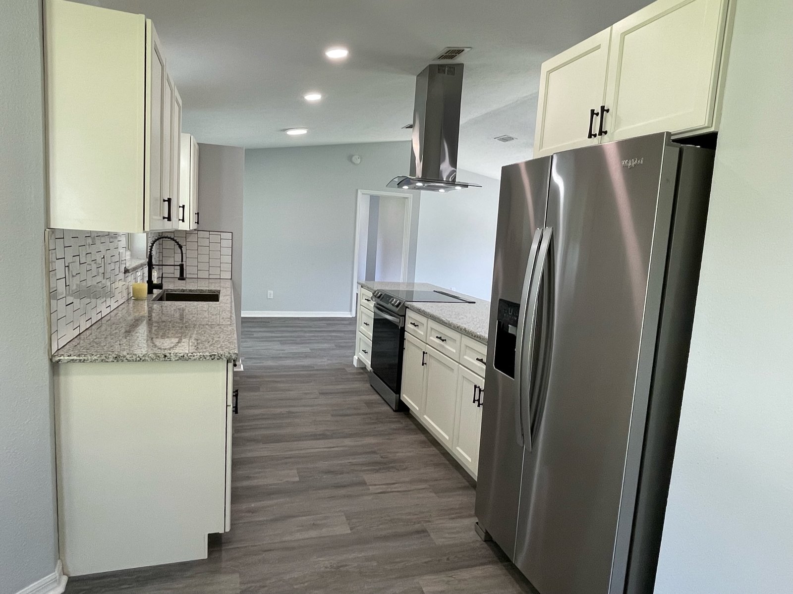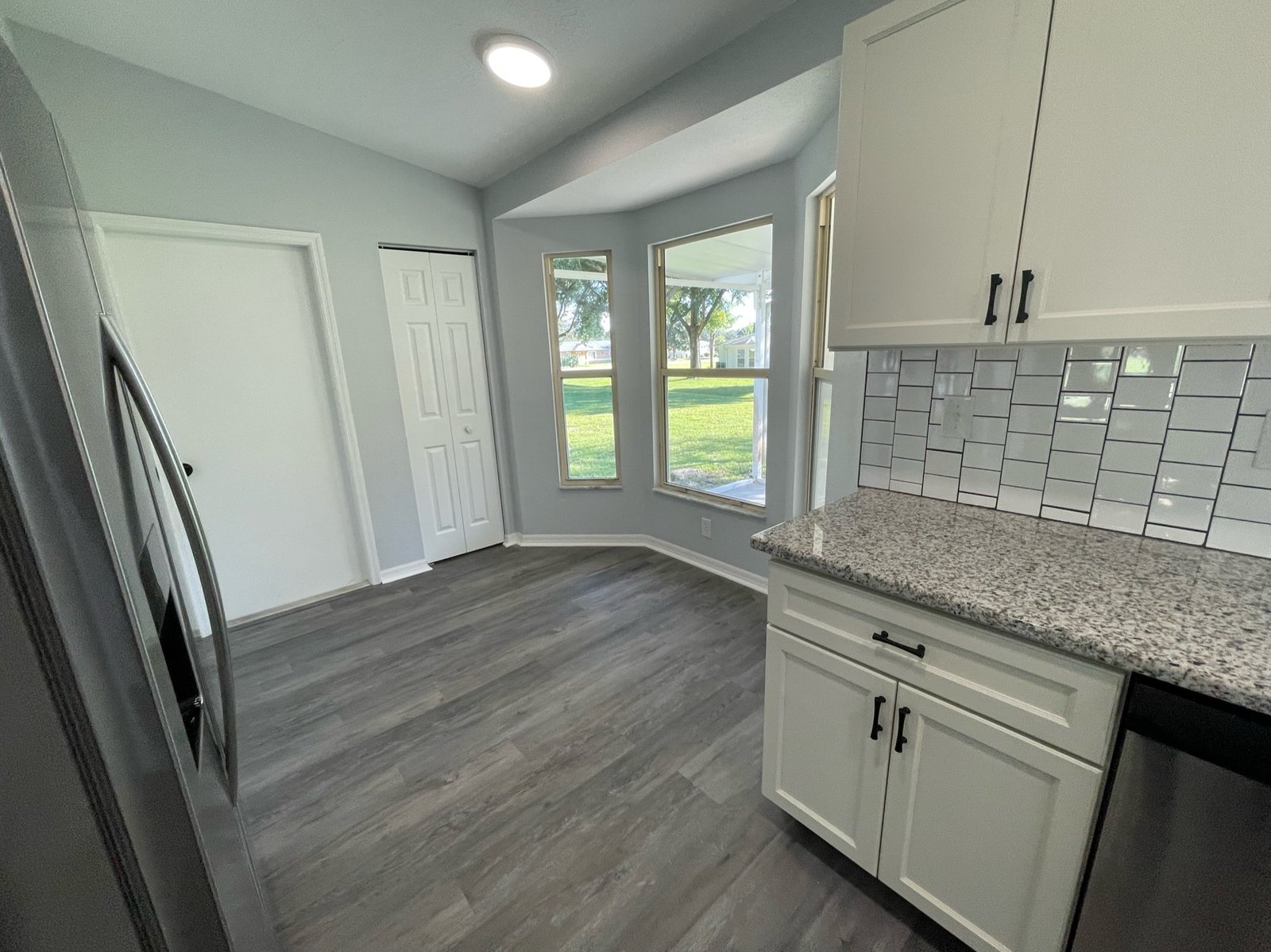 This 2-bedroom, 2-bathroom split floor plan home was completely transformed, starting with the installation of a brand-new central HVAC system and a new water heater. We updated the interior with fresh paint and our signature luxury vinyl plank flooring throughout. The kitchen was entirely remodeled with new cabinets, granite countertops, stainless steel appliances, and a classic tile backsplash that added timeless appeal.