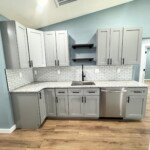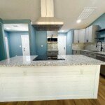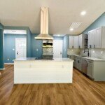 The home was outfitted with recessed lighting throughout, durable and stylish luxury vinyl plank flooring, and a sleek modern board-and-batten exterior. The heart of the home — the kitchen — featured granite countertops, stainless steel appliances, a glass tile backsplash, and a large island equipped with a built-in range and range hood. Additional touches included a farmhouse sink, microwave, dishwasher, and ample counter space, creating a kitchen that was both functional and beautiful.