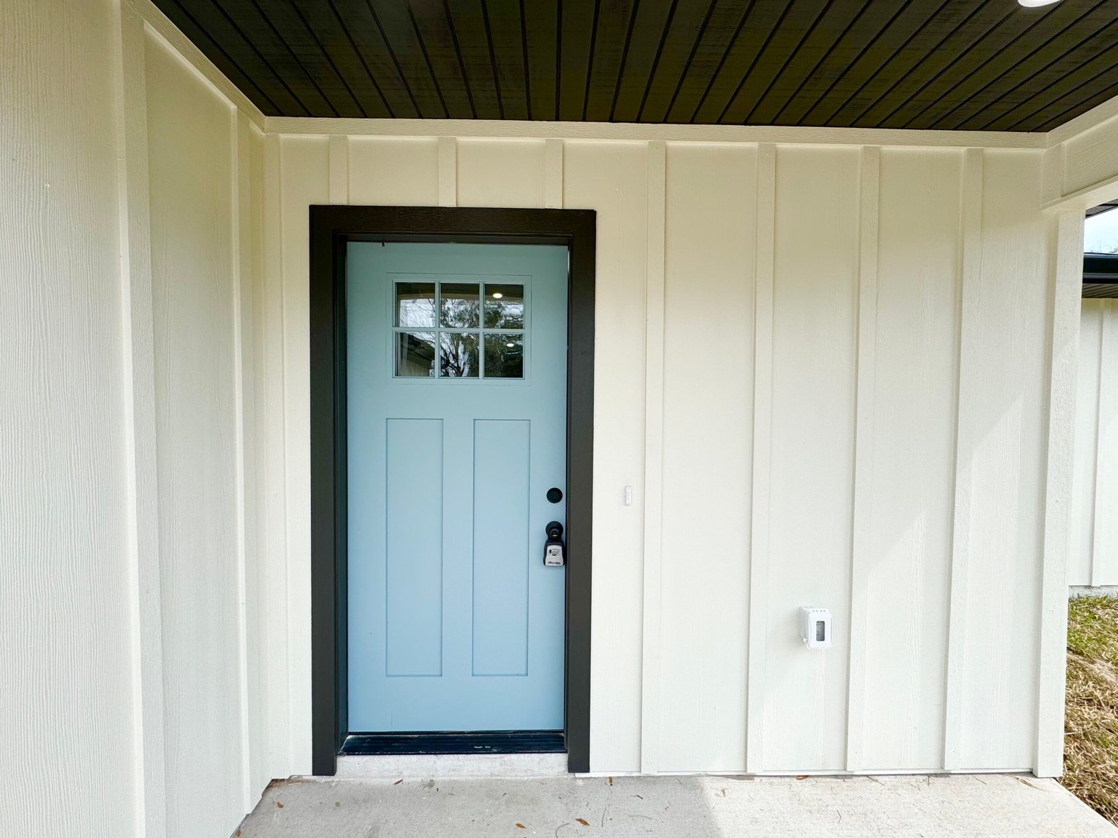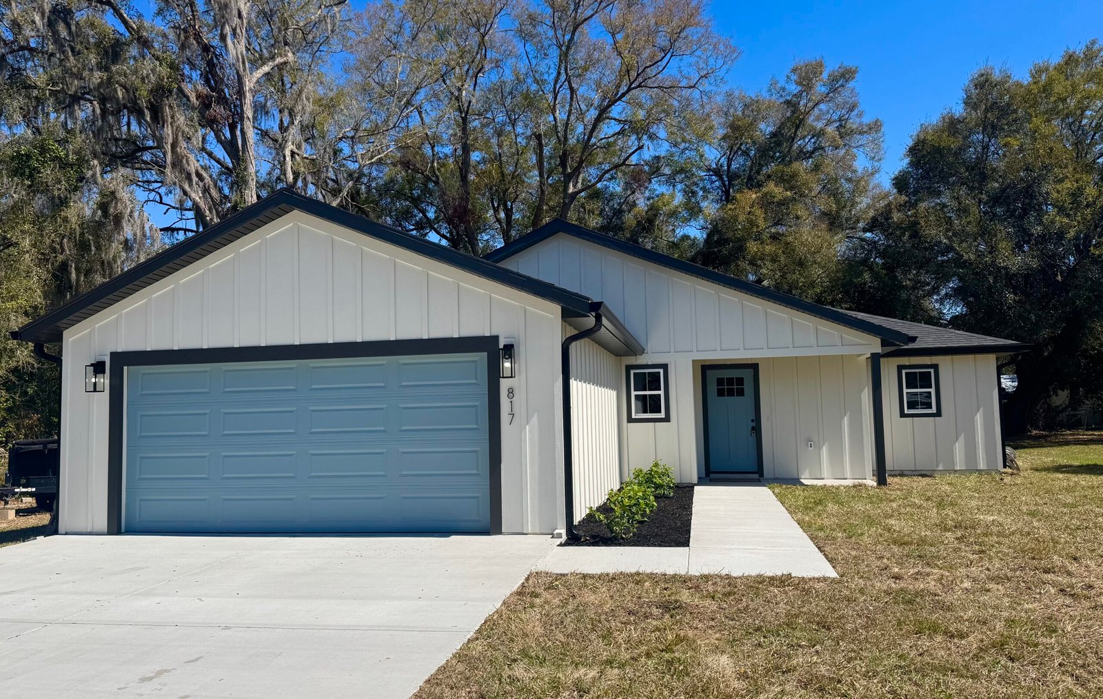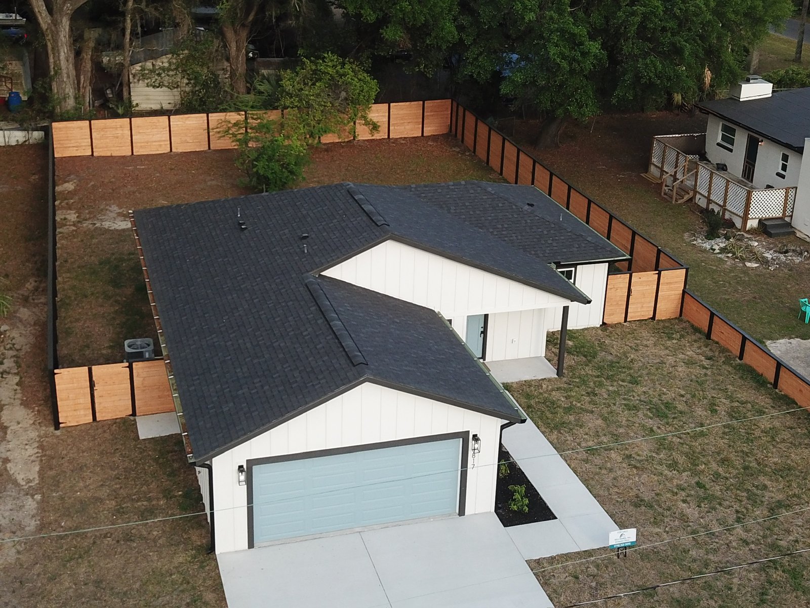 Built with energy efficiency in mind, The Winker was constructed using BAT insulation throughout the ceiling and walls of the living areas — including full insulation in the garage — to help combat the Florida heat. The exterior was finished with a clean, board-and-batten facade and enclosed with a modern privacy fence, creating the perfect setting for a future backyard oasis.