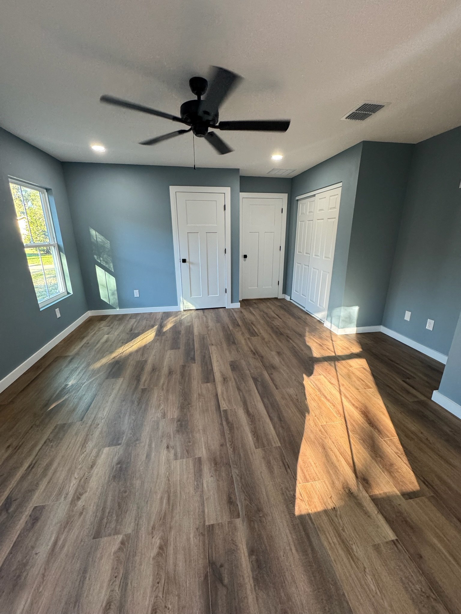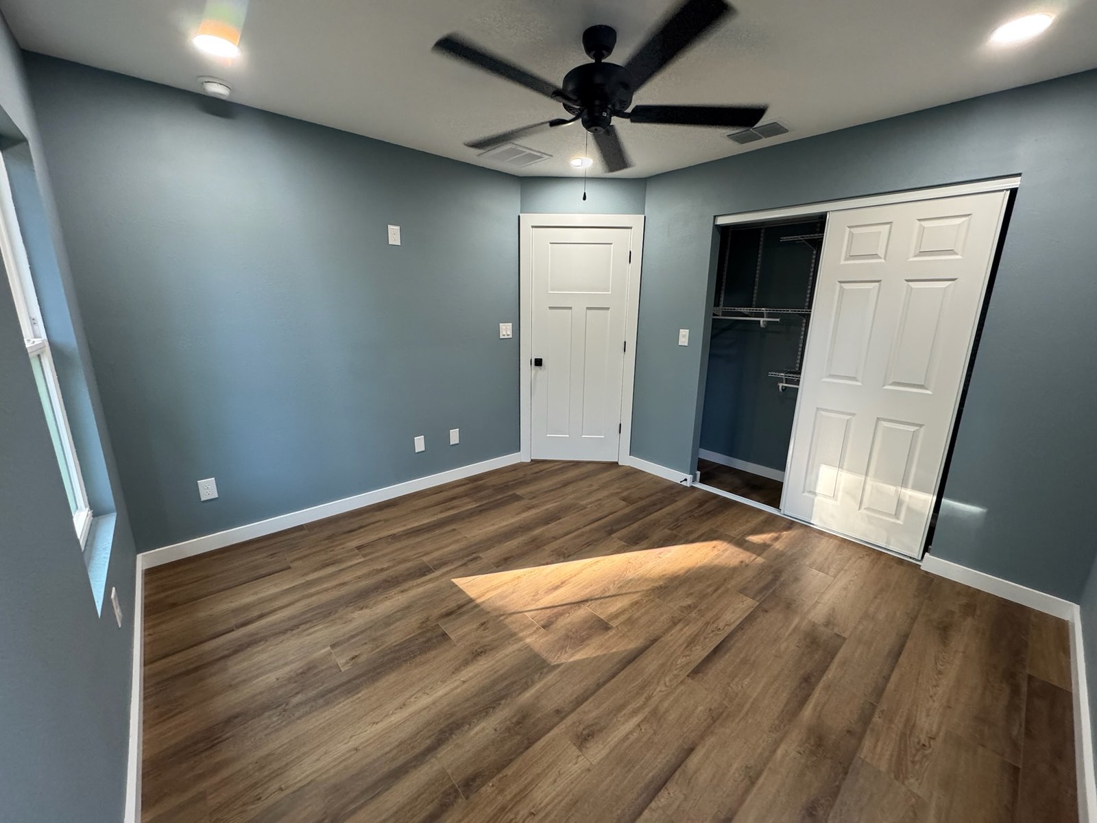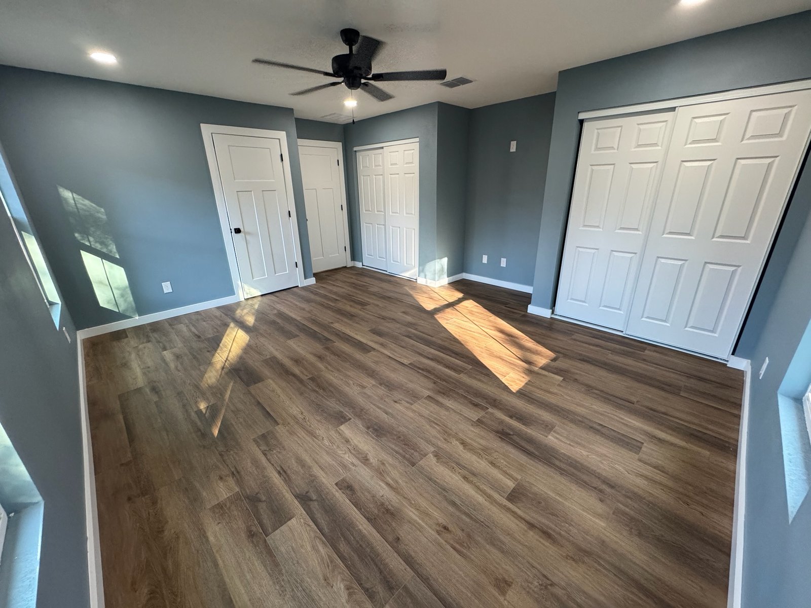 Both bathrooms were completely new and designed with modern touches, including fully tiled shower and tub walls, rainfall shower heads, and clean, contemporary finishes. Bedroom closets were outfitted with convenient shelving systems, providing practical and flexible storage. Washer and dryer hookups were located inside the home for easy access, and the attached two-car garage offered additional functionality and space.
