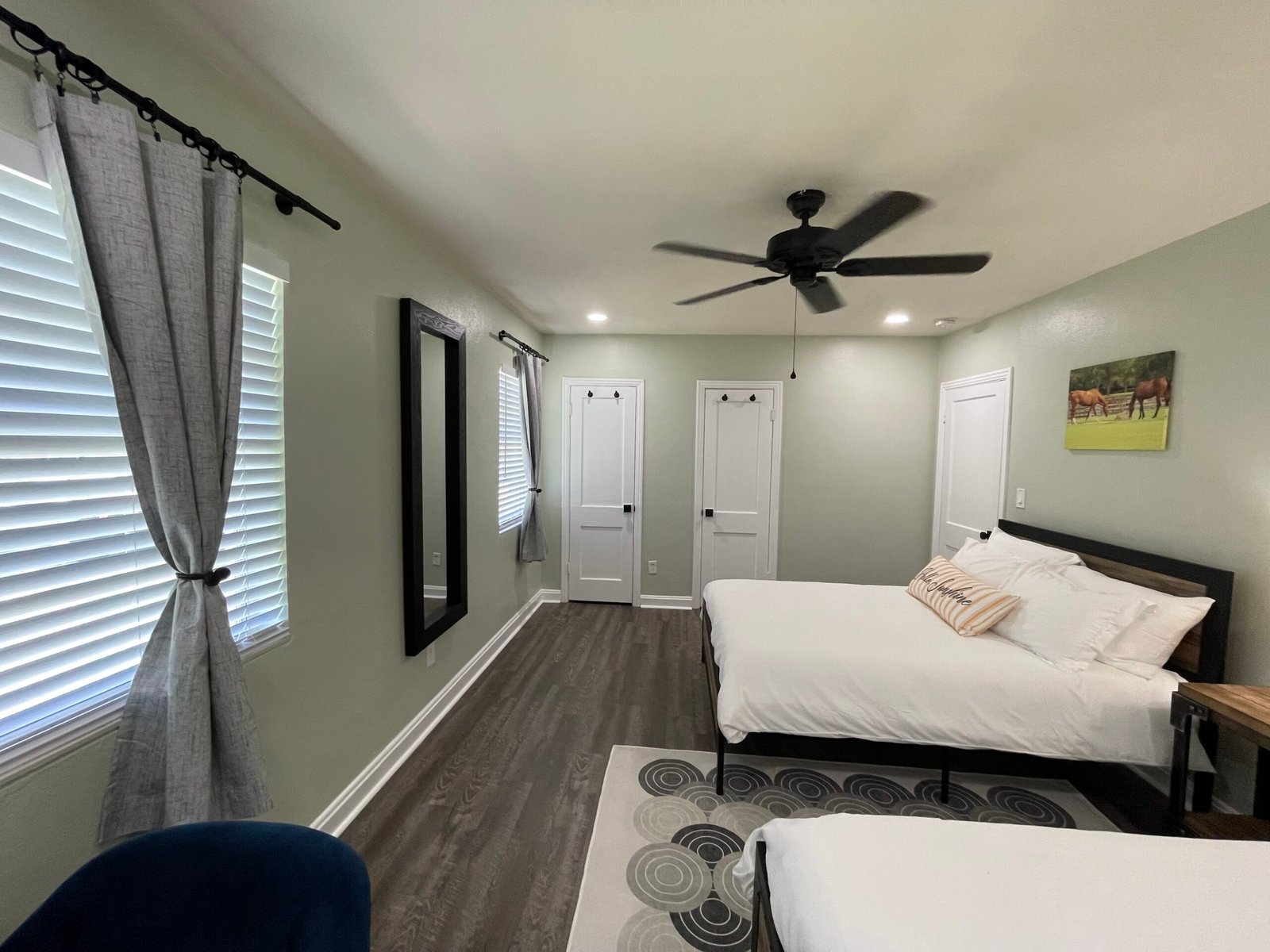 The Canter is another one of our tastefully remodeled, pet-friendly short-term rentals, offering a welcoming retreat for both guests and their pets. This property received a full bathroom remodel, brand-new flooring, fresh interior and exterior paint, updated lighting, ceiling fans, and modern hardware throughout.