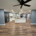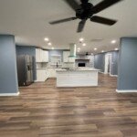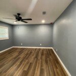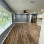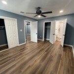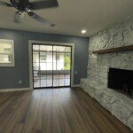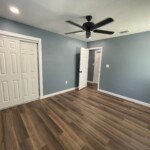 With the structure sound, we turned our attention to the finishes. The main home now features four bedrooms and three bathrooms, including two master suites, while the separate efficiency apartment offers a one-bedroom, one-bath layout. Both spaces received fresh interior and exterior paint, recessed lighting in every room, ceiling fans in all living areas and bedrooms, modern Decora-style switches and outlets, and durable LVP flooring.