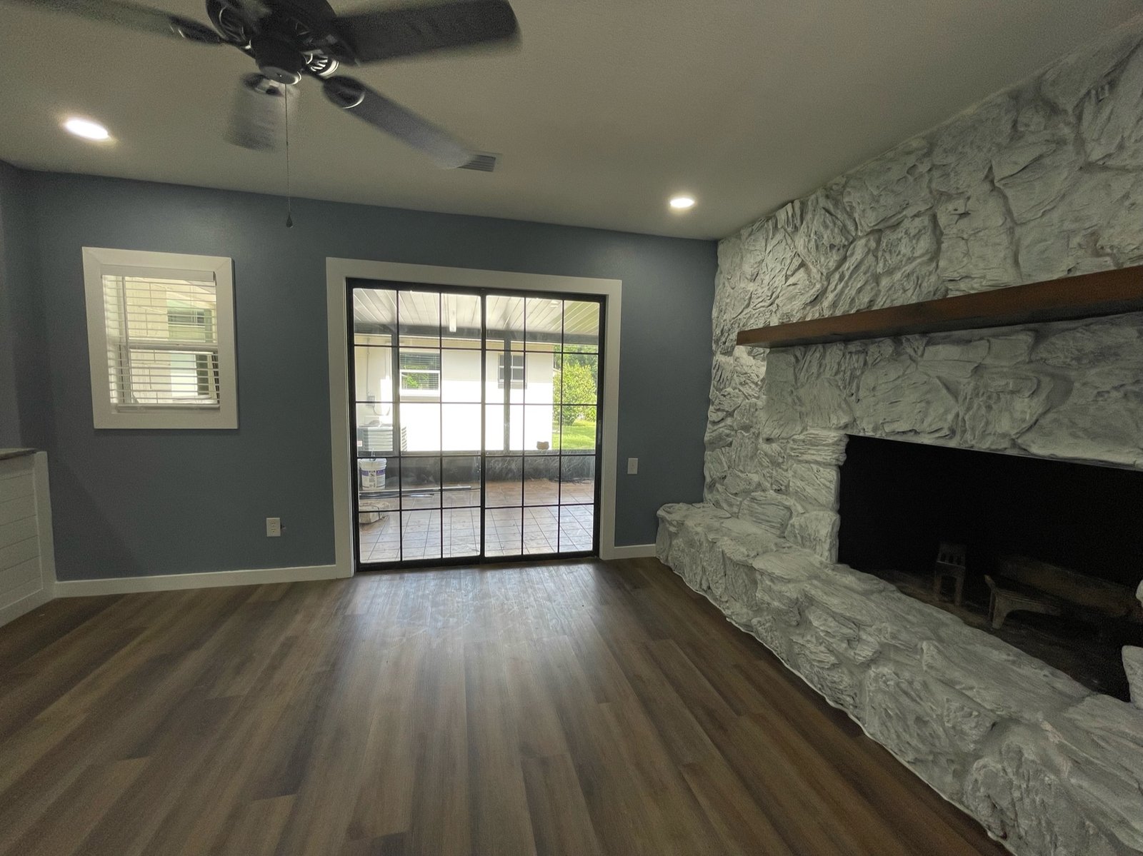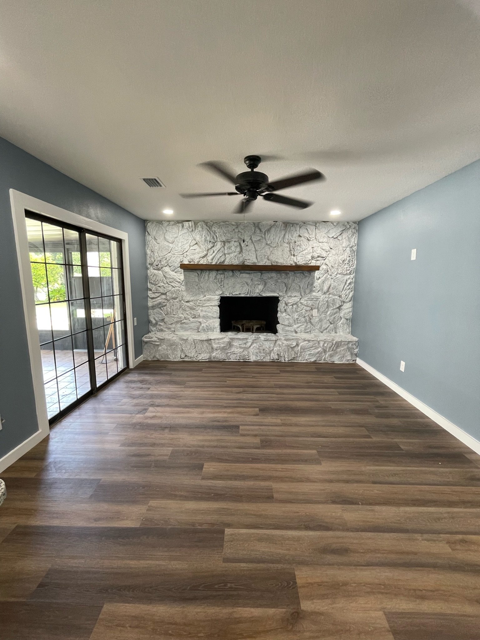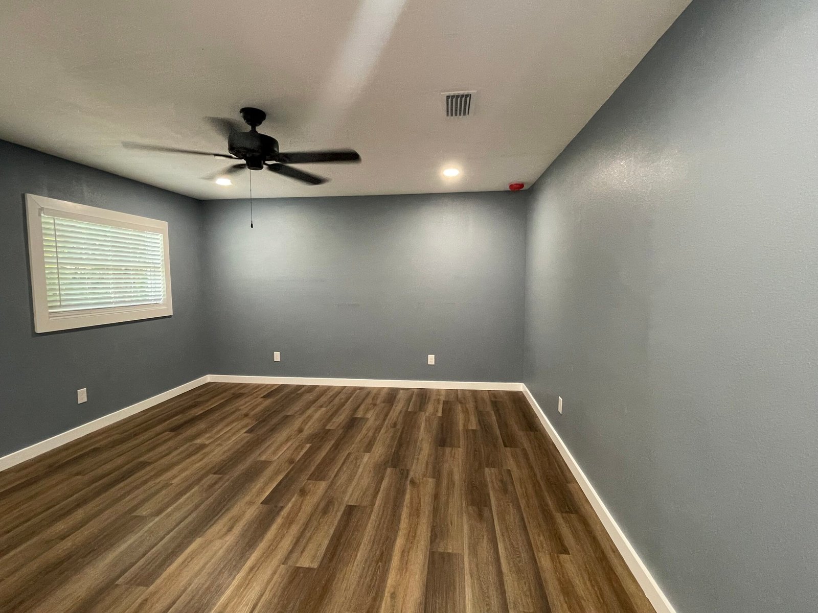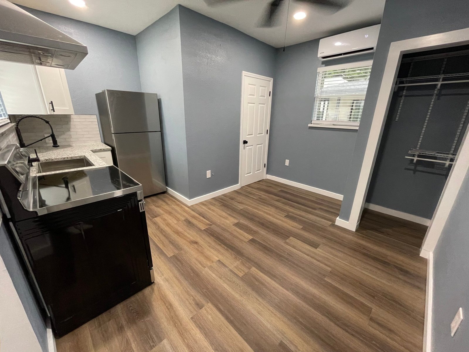 With the structure sound, we turned our attention to the finishes. The main home now features four bedrooms and three bathrooms, including two master suites, while the separate efficiency apartment offers a one-bedroom, one-bath layout. Both spaces received fresh interior and exterior paint, recessed lighting in every room, ceiling fans in all living areas and bedrooms, modern Decora-style switches and outlets, and durable LVP flooring.