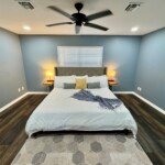 The bathrooms have been updated with new shower hardware, vanities and toilets. Every room features updated LED lighting and there are ceiling fans in the bedrooms, dining & living rooms.