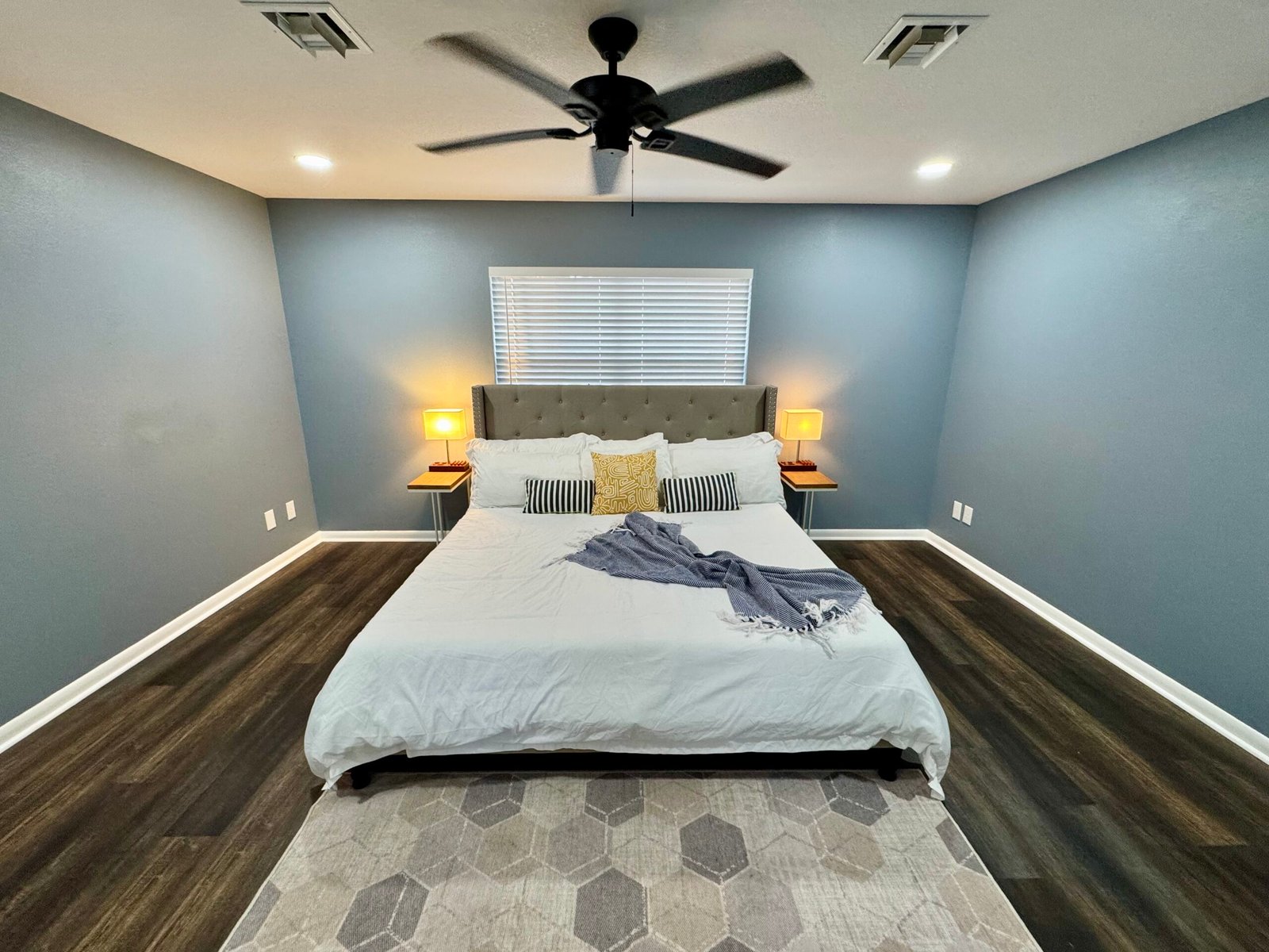 The bathrooms have been updated with new shower hardware, vanities and toilets. Every room features updated LED lighting and there are ceiling fans in the bedrooms, dining & living rooms.